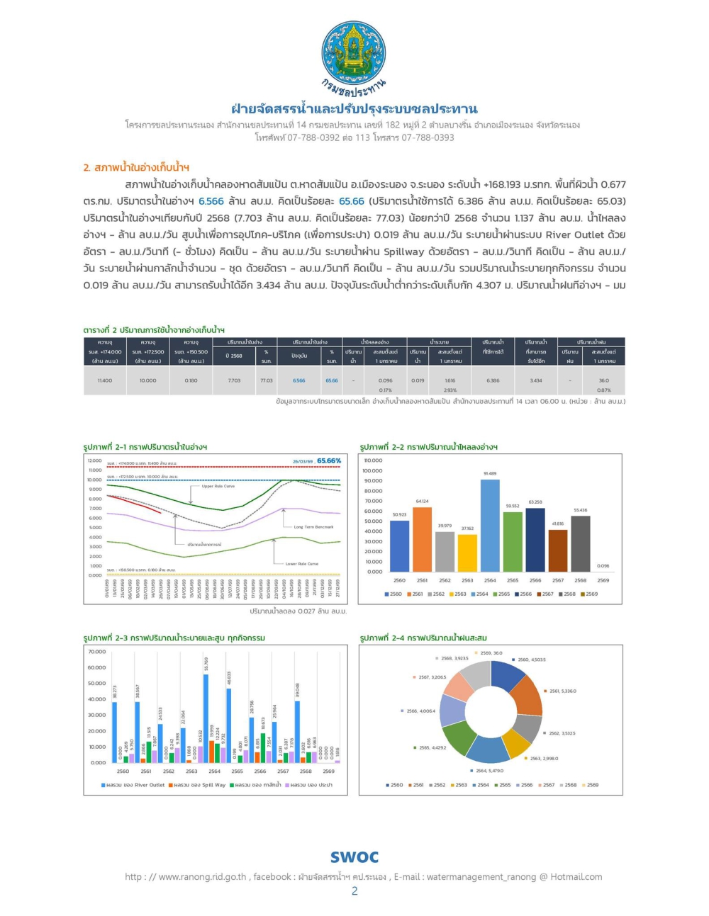 รายงานสถานการณ์น้ำ วันพฤหัสบดีที่ 26 มีนาคม 2569