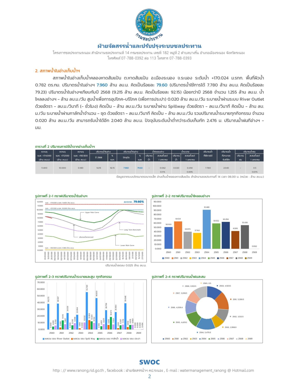 รายงานสถานการณ์น้ำ วันจันทร์ที่ 26 มกราคม 2569