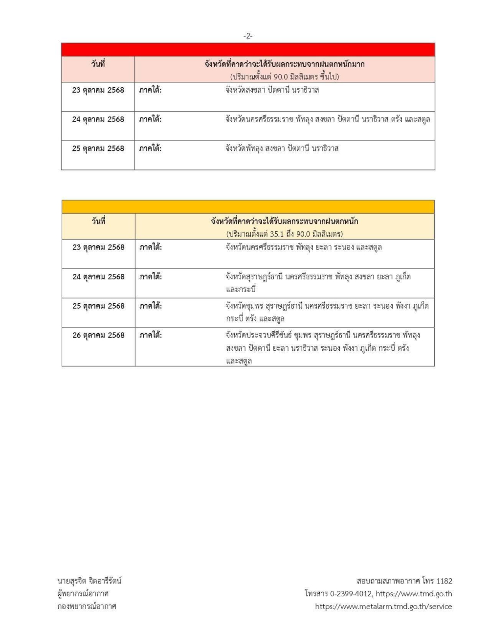 กรมอุตุนิยมวิทยาจะออกประกาศฉบับต่อไปในวันที่ 21 ตุลาคม พ.ศ. 2568 เวลา 11.00 น.