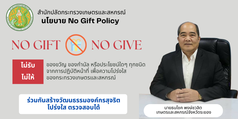 ประกาศเจตนารมณ์ไม่รับของขวัญเเละของกำนัลทุกชนิดจากการปฏิบัติหน้าที่ (No Gift Policy)