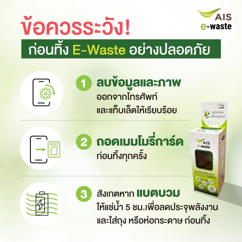 สามารถนำขยะ E-Waste มาทิ้งได้ที่ ถังขยะ ที่เตรียมไว้