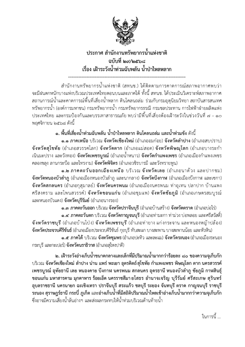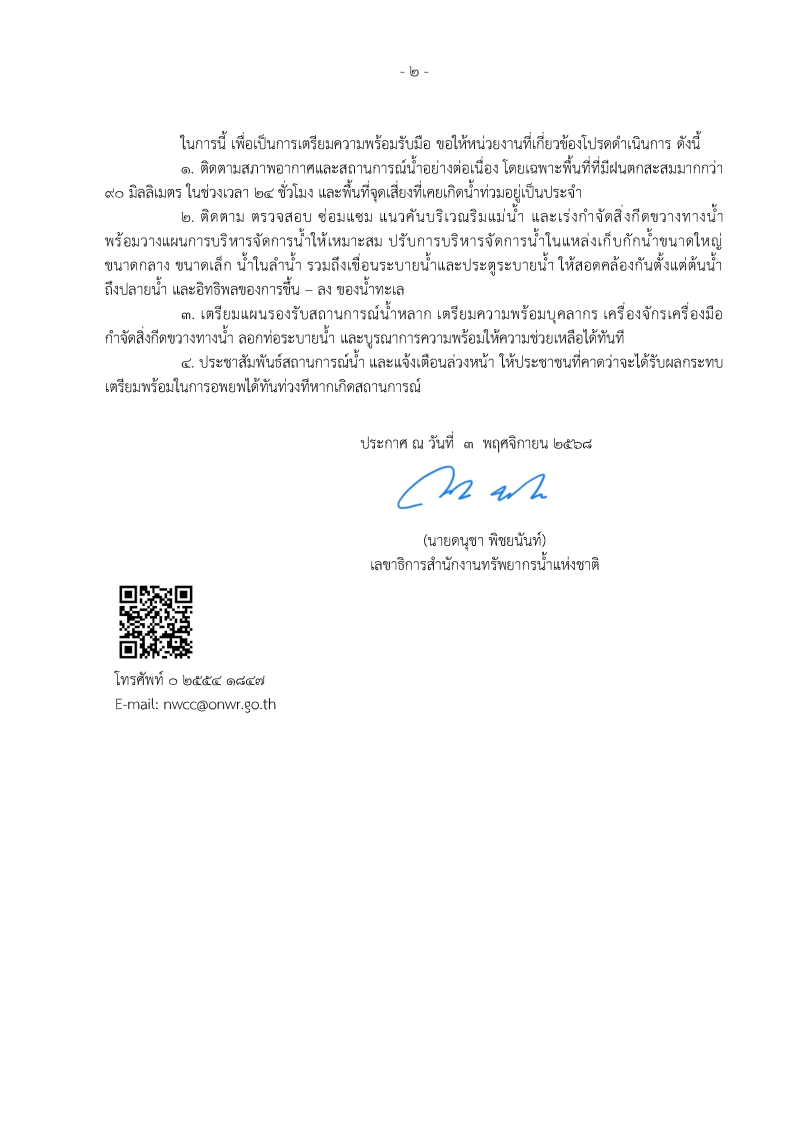 แจ้งเตือนภัย เฝ้าระวัง น้ำท่วมฉับพลัน น้ำป่าไหลหลาก