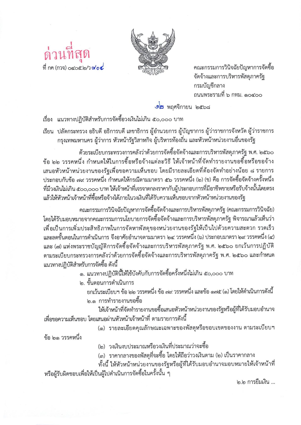 แนวทางปฏิบัติสำหรับการจัดซื้อวงเงิน ไม่เกิน 50,000 บาท
