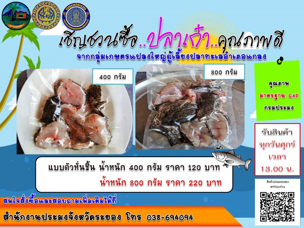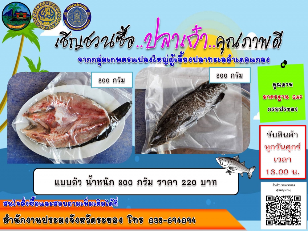 เชิญชวญสั่งซื้อ"ปลาเก๋า คุณภาพดี "จากกลุ่มเกษตรแปลงใหญ่ผู้เลี้ยงปลาทะเลอำเภอแกลง