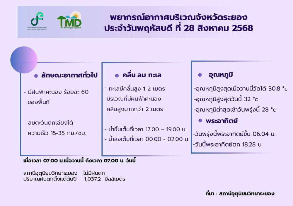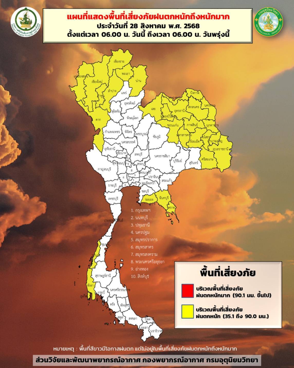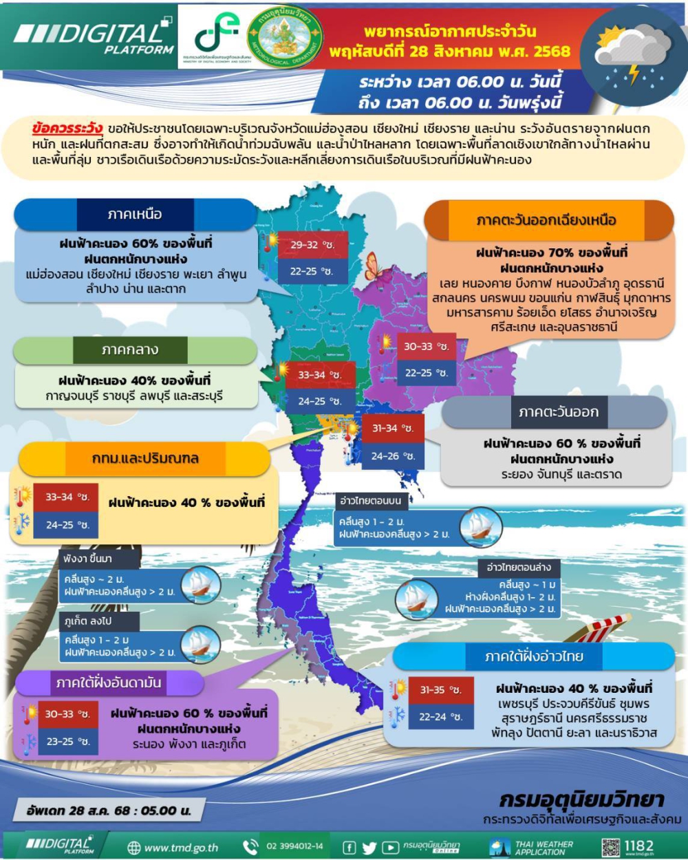 คาดหมายลักษณะอากาศ 28 สิงหาคม 2568