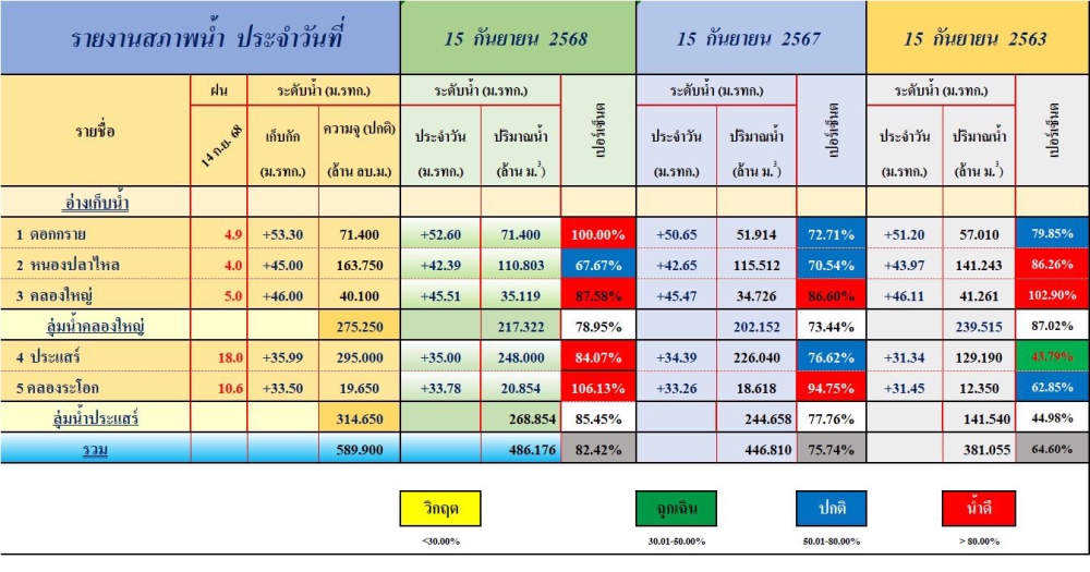 รายงานสถานการณ์ และการบริหารจัดการน้ำ จังหวัดระยอง ( ข้อมูล ณ วันที่ 15 กันยายน 2568 )