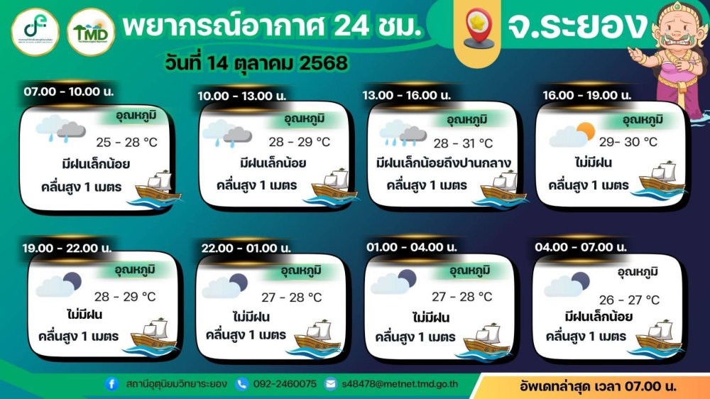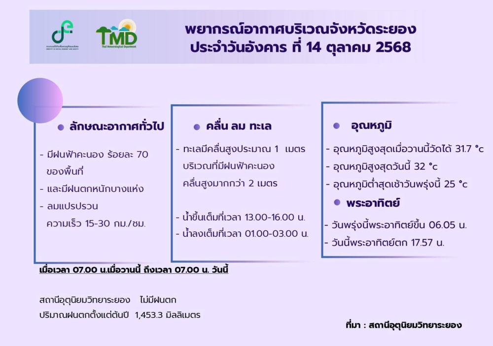คาดหมายลักษณะอากาศ วันที่ 14 ตุลาคม 2568