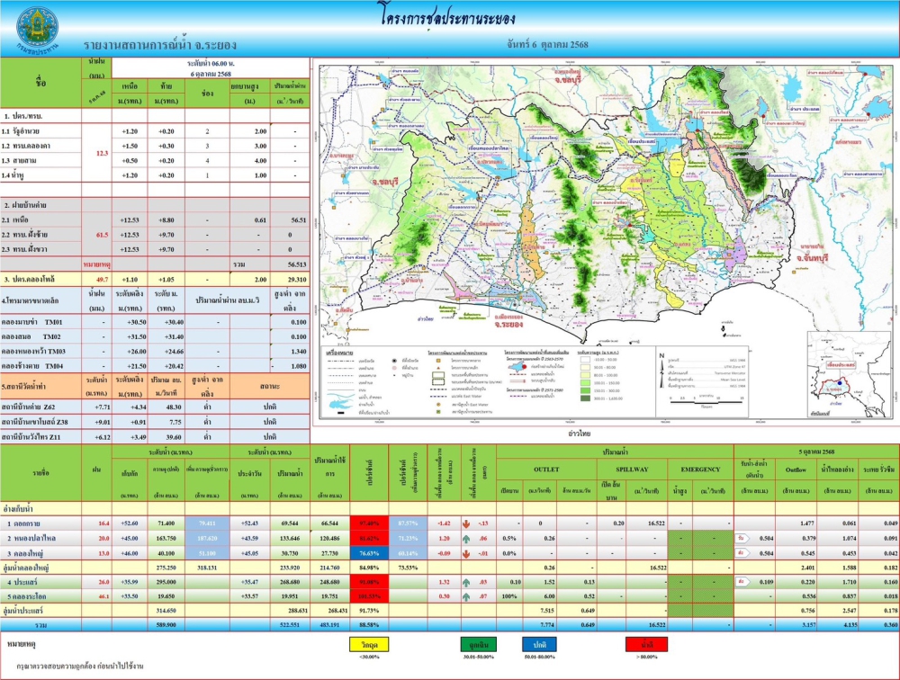 รายงานสถานการณ์ และการบริหารจัดการน้ำ จังหวัดระยอง ( ข้อมูล ณ วันที่ 6 ตุลาคม 2568 )