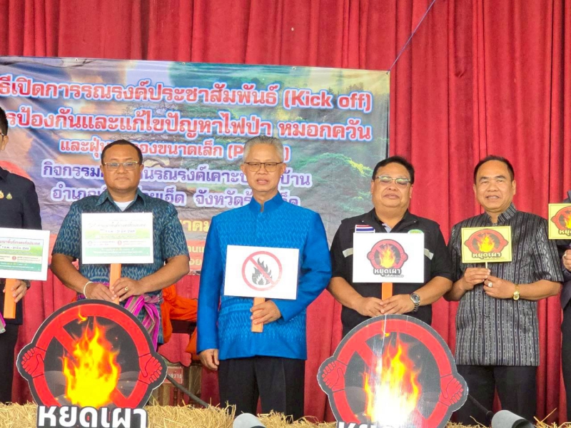 วันที่ 11 มีนาคม 2569 เวลา 08.30 น. นายจิรัฐถิติกาล โพธิผล เกษตรและสหกรณ์จังหวัดร้อยเอ็ด พร้อมด้วยกลุ่มช่วยเหลือเกษตรกรและโครงการพิเศษ สำนักงานเกษตรและสหกรณ์จังหวัดร้อยเอ็ด เข้าร่วมกิจกรรมการรณรงค์ประชาสัมพันธ์ (Kick off) การป้องกันและแก้ไขปัญหาไฟป่า หมอกควัน และฝุ่นละอองขนาดเล็ก (PM2.5) ณ หอประชุมโรงเรียนบ้านแดงโนนสว่าง หมู่ที่ 19 ตำบลเหนือเมือง อำเภอเมือง จังหวัดร้อยเอ็ด โดยมี นายชัชวาลย์ เบญจสิริวงศ์ ผู้ว่าราชการจังหวัดร้อยเอ็ด เป็นประธานเปิดกิจกรรม ซึ่งมีกิจกรรมที่สำคัญ อาทิ การจัดนิทรรศการเกี่ยวกับการป้องกันและแก้ไขปัญหาไฟป่า หมอกควัน และฝุ่นละอองขนาดเล็ก (PM2.5) การเดินรณรงค์เคาะประตูบ้าน เพื่อสร้างความตระหนักรู้ให้กับประชาชนถึงความสำคัญของการห้ามเผาในทุกครัวเรือน