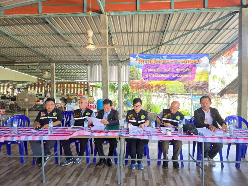 วันที่ 17 มีนาคม 2569 เวลา 09.30 น. นายจิรัฐถิติกาล โพธิผล เกษตรและสหกรณ์จังหวัดร้อยเอ็ด พร้อมด้วยนายชัยวัฒน์ กงสะเด็น หัวหน้ากลุ่มช่วยเหลือเกษตรกรและโครงการพิเศษ และเจ้าหน้าที่ที่เกี่ยวข้อง ลงพื้นที่ร่วมกับเจ้าหน้าที่จากกองบริหารงานกองทุนสงเคราะห์เกษตรกร สำนักงานปลัดกระทรวงเกษตรและสหกรณ์ และผู้ทรงคุณวุฒิในคณะกรรมการสงเคราะห์เกษตรกร เพื่อตรวจสอบและพิจารณาความเป็นไปได้ของโครงการที่ขอใช้เงินกองทุนสงเคราะห์เกษตรกร พร้อมทั้งสร้างความรู้ความเข้าใจหลักเกณฑ์ เงื่อนไขการขอรับการจัดสรรเงินกองทุนสงเคราะห์เกษตรกร โครงการโคเนื้อสร้างอาชีพ ระยะ 2 ของกลุ่มวิสาหกิจชุมชนการเกษตรบ้านดงเกลือ ตำบลคูเมือง อำเภอเมืองสรวง จังหวัดร้อยเอ็ด โดยมีนายอำนาจ มะธิปิไข ปศุสัตว์จังหวัดร้อยเอ็ด พร้อมด้วยเจ้าหน้าที่ ร่วมลงพื้นที่ในครั้งนี้ด้วย