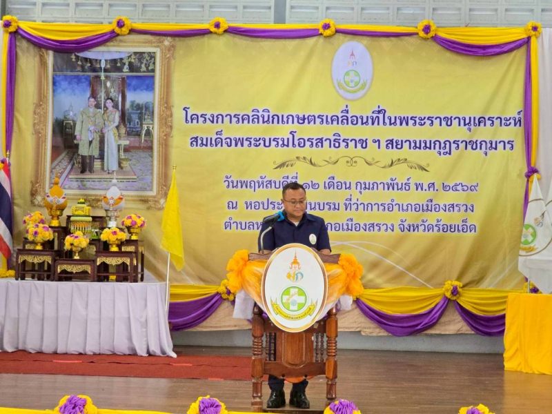 วันที่ 12 กุมภาพันธ์ 2569 เวลา 08.30 น. นายจิรัฐถิติกาล โพธิผล เกษตรและสหกรณ์จังหวัดร้อยเอ็ด พร้อมด้วยเจ้าหน้าที่สำนักงานเกษตรและสหกรณ์จังหวัดร้อยเอ็ด ร่วมงานโครงการคลินิกเกษตรเคลื่อนที่ในพระราชานุเคราะห์ สมเด็จพระบรมโอรสาธิราชฯ สยามมกุฎราชกุมาร ณ หอประชุมขุนบรม ที่ว่าการอำเมืองสรวง จังหวัดร้อยเอ็ด โดยมี นายชัชวาลย์ เบญจสิริวงศ์