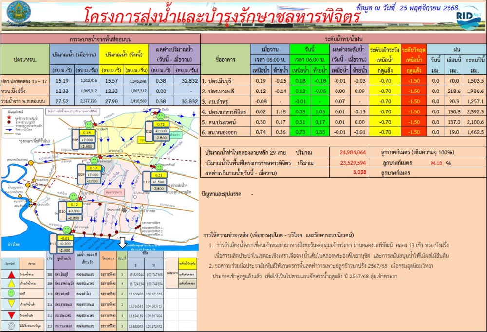 สถานการณ์น้ำ ประจำวันที่ 25 พฤศจิกายน 2568