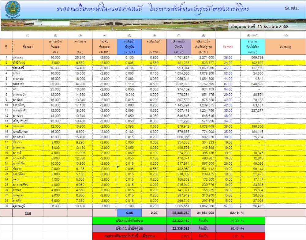 สถานการณ์น้ำ ประจำวันที่ 15 ธันวาคม 2568