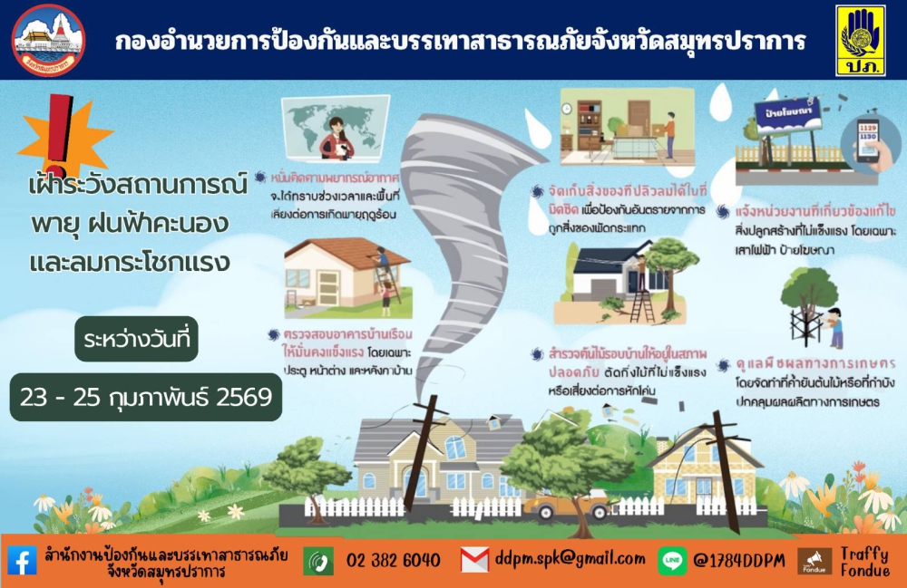 เฝ้าระวังสถานการณ์ พายุ ฝนฟ้าคะนอง และลมกระโชกแรง ระหว่างวันที่ 23 - 25 กุมภาพันธ์ 2569