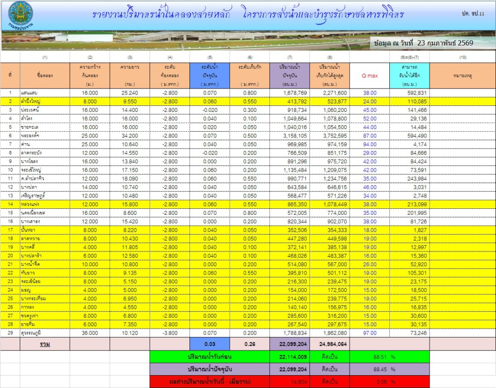 สถานการณ์น้ำ ประจำวันที่ 23 กุมภาพันธ์ 2569