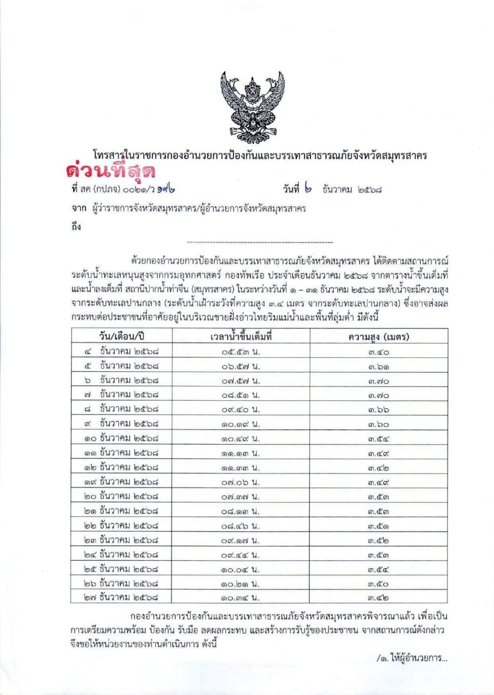 แจ้งเตือน วันนี้ยังมีน้ำทะเลหนุนสูง