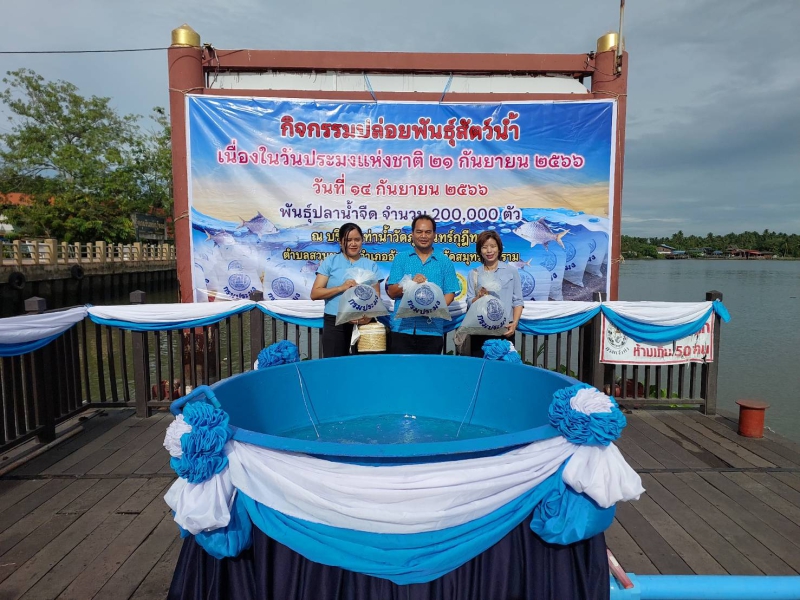 เมื่อวันที่ 21 กันยายน 2566 เวลา 09.00 น. นางสุพิศ พูลคุณานุกูร เกษตรและสหกรณ์จังหวัดสมุทรสงคราม มอบนายวรวรรษ กระจ่างแจ่ม หัวหน้ากลุ่มสารสนเทศการเกษตร สำนักงานเกษตรและสหกรณ์จังหวัดสมุทรสงคราม และเจ้าหน้าที่ เข้าร่วมกิจกรรมปล่อยพันธุ์สัตว์น้ำเนื่องในวันประมงแห่งชาติ ประจำปี ๒๕๖๖ โดยมีนายศิริศักดิ์ ศิริมังคะลา รองผู้ว่าราชการจังหวัดสมุทรสงคราม เป็นประธานพิธี บริเวณท่าน้ำวัดภุมรินทร์กุฎีทอง ตําบลสวนหลวง อําเภออัมพวา จังหวัดสมุทรสงคราม