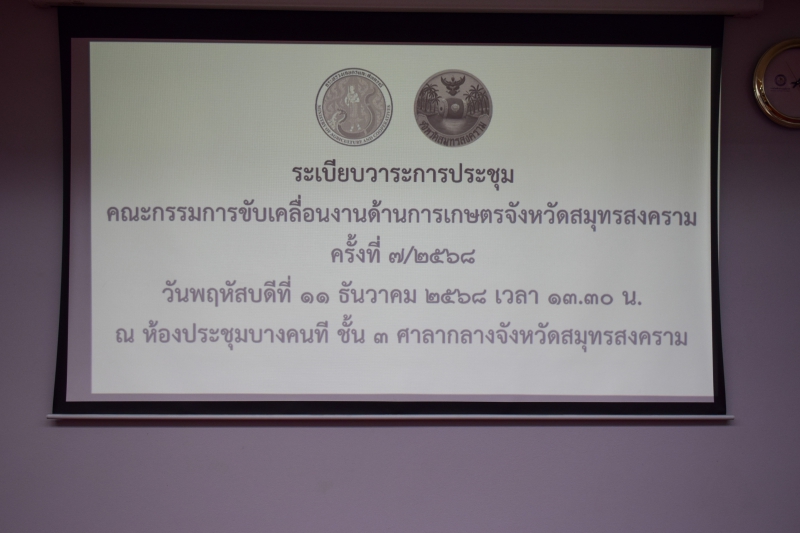เมื่อวันที่ 11 ธันวาคม 2568 เวลา 13.30 น. นายประดิษฐ์ เกษมวิสิฐกุล เกษตรและสหกรณ์จังหวัดสมุทรสงคราม เป็นประธานการประชุมคณะกรรมการขับเคลื่อนงานด้านการเกษตรจังหวัดสมุทรสงคราม ครั้งที่ 7/2568 โดยมี นางสาวเบ็ญจมาศ อู่อ่อน หัวหน้ากลุ่มยุทธศาสตร์พัฒนาการเกษตร สำนักงานเกษตรและสหกรณ์จังหวัดสมุทรสงคราม เป็นเลขานุการ มี นายวรวรรษ กระจ่างแจ่ม หัวหน้ากลุ่มสารสนเทศการเกษตร ว่าที่ร้อยตรี อานนท์ วิเศษสิงห์ หัวหน้ากลุ่มช่วยเหลือเกษตรกรและโครงการพิเศษ สำนักงานเกษตรและสหกรณ์จังหวัดสมุทรสงคราม คณะกรรมการขับเคลื่อนงานด้านการเกษตรฯ ผู้แทนส่วนราชการ และเจ้าหน้าที่ที่เกี่ยวข้อง ร่วมประชุม เพื่อพิจารณาปัญหาด้านการเกษตรในพื้นที่จังหวัดสมุทรสงคราม ได้แก่ ด้านการบริหารจัดการน้ำ ด้านประมง ด้านพืช ด้านปศุสัตว์ ด้านสหกรณ์/การรวมกลุ่ม ด้านดินและปุ๋ย ด้านการทำบัญชีต้นทุนและบัญชีครัวเรือน ด้านข้าว ด้านมาตรฐานสินค้าเกษตร ข้อมูลสินค้าเกษตร และข้อมูลกลุ่มเกษตรกรและองค์กรด้านการเกษตรของจังหวัดสมุทรสงคราม ณ ห้องประชุมบางคนที ชั้น 3 ศาลากลางจังหวัดสมุทรสงคราม