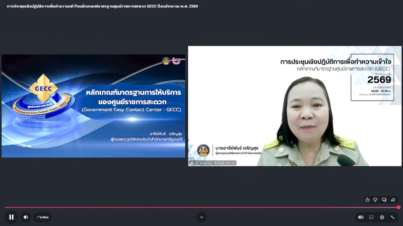 เมื่อวันที่ 22 ธันวาคม 2568 เวลา 08.30 น. นายประดิษฐ์ เกษมวิสิฐกุล เกษตรและสหกรณ์จังหวัดสมุทรสงคราม พร้อม นายวรวรรษ กระจ่างแจ่ม หัวหน้ากลุ่มสารสนเทศการเกษตร ว่าที่ร้อยตรี อานนท์ วิเศษสิงห์ หัวหน้ากลุ่มช่วยเหลือเกษตรกรและโครงการพิเศษ นางสาวกนกอร พุ่มสุข หัวหน้าฝ่ายบริหารทั่วไป สำนักงานเกษตรและสหกรณ์จังหวัดสมุทรสงคราม ร่วมประชุมทำความเข้าใจหลักเกณฑ์มาตรฐานการให้บริการของศูนย์ราชการสะดวก (มาตรฐาน GECC) ประจำปีงบประมาณ พ.ศ. 2569 ผ่านทางระบบออนไลน์ โดยมี นางยุพา ทวีวัฒนะกิจบวร ปลัดสำนักนายกรัฐมนตรี เป็นประธาน โดยมีวัตถุประสงค์เพื่อยกระดับการให้บริการของหน่วยงานของรัฐในการอำนวยความสะดวกให้กับประชาชนได้อย่างมีประสิทธิภาพและประสิทธิผล ก่อให้เกิดความพึงพอใจในการให้บริการ สร้างภาพลักษณ์ที่ดีและความเชื่อมั่นของประชาชนในการติดต่อราชการ ณ ห้องประชุมสำนักงานเกษตรและสหกรณ์จังหวัดสมุทรสงคราม ชั้น 4 ศาลากลางจังหวัดสมุทรสงคราม