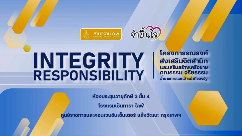 เมื่อวันที่ 5 มีนาคม 2569 เวลา 08.00 น. นายประดิษฐ์ เกษมวิสิฐกุล เกษตรและสหกรณ์จังหวัดสมุทรสงคราม มอบ นางสาวกนกอร พุ่มสุข หัวหน้าฝ่ายบริหารทั่วไป สำนักงานเกษตรและสหกรณ์จังหวัดสมุทรสงครามและเจ้าหน้าที่ ร่วมโครงการรณรงค์ส่งเสริมจิตสำนึกและเสริมสร้างเครือข่ายคุณธรรม จริยธรรม ข้าราชการและเจ้าหน้าที่ของรัฐ ผ่านทางสื่ออิเล็กทรอนิกส์ Youtube Live ของสำนักงาน ก.พ. ณ สำนักงานเกษตรและสหกรณ์จังหวัดสมุทรสงคราม ชั้น 4 ศาลากลางจังหวัดสมุทรสงคราม