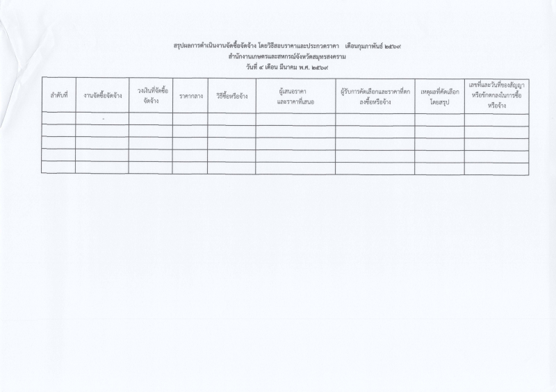 สรุปผลการดำเนินงานจัดซื้อจัดจ้างในรอบเดือน กุมภาพันธ์ 2569