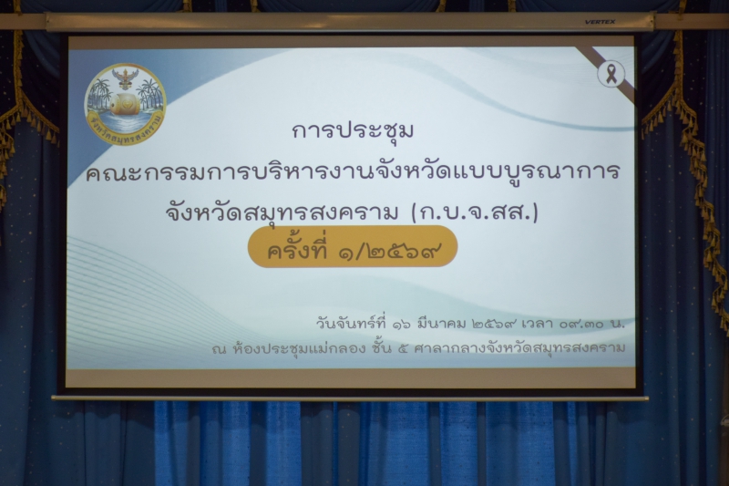 เมื่อวันที่ 16 มีนาคม 2569 เวลา 09.30 น. นายประดิษฐ์ เกษมวิสิฐกุล เกษตรและสหกรณ์จังหวัดสมุทรสงคราม ร่วมประชุมคณะกรรมการบริหารงานจังหวัดแบบบูรณาการจังหวัดสมุทรสงคราม (ก.บ.จ.สส.) ครั้งที่ 1/2569 โดยมี นายชยชัย แสงอินทร์ ผู้ว่าราชการจังหวัดสมุทรสงคราม เป็นประธาน นายกรกฎ วงษ์สุวรรณ นายรนัสถ์ชัย พุ่มเจริญ รองผู้ว่าราชการจังหวัดสมุทรสงคราม ร่วมประชุม เพื่อพิจารณา การขอเปลี่ยนแปลงรายละเอียดโครงการตามแผนปฏิบัติราชการประจำปีของจังหวัด ประจำปีงบประมาณ พ.ศ. 2569 การตรวจสอบเงินชดเชยค่างานก่อสร้าง (ค่า K) ณ ห้องประชุมแม่กลอง ชั้น 5 ศาลากลางจังหวัดสมุทรสงคราม