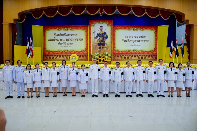 เมื่อวันที่ 24 เมษายน 2569 เวลา 09.30 น. นายประดิษฐ์ เกษมวิสิฐกุล เกษตรและสหกรณ์จังหวัดสมุทรสงคราม พร้อม นางสาวปฏิมาธัมมา วุฒิพงศ์วรากร หัวหน้ากลุ่มช่วยเหลือเกษตรกรและโครงการพิเศษ สำนักงานเกษตรและสหกรณ์จังหวัดสมุทรสงคราม และเจ้าหน้าที่ ร่วมพิธีถวายราชสักการะเนื่องในวันคล้ายวันสวรรคตสมเด็จพระนเรศวรมหาราช ประจำปี 2569 โดยมี นายชยชัย แสงอินทร์ ผู้ว่าราชการจังหวัดสมุทรสงคราม เป็นประธาน นายรนัสถ์ชัย พุ่มเจริญ รองผู้ว่าราชการจังหวัดสมุทรสงคราม ร่วมพิธี ณ หอประชุมพิพัฒน์มงคล องค์การบริหารส่วนจังหวัดสมุทรสงคราม