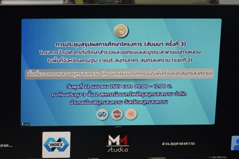 เมื่อวันที่ 22 เมษายน 2569 เวลา 09.30 น. นายประดิษฐ์ เกษมวิสิฐกุล เกษตรและสหกรณ์จังหวัดสมุทรสงคราม มอบ นางสาวเบ็ญจมาศ อู่อ่อน หัวหน้ากลุ่มยุทธศาสตร์พัฒนาการเกษตร สำนักงานเกษตรและสหกรณ์จังหวัดสมุทรสงคราม ร่วมประชุมสรุปผลการศึกษาโครงการ (สัมมนา ครั้งที่ 3) โครงการจ้างวิศวกรที่ปรึกษาสำรวจและออกแบบและบูรณะสะพาน บนทางหลวงในพื้นที่จังหวัดนครปฐม ราชบุรี สมุทรสาคร สมุทรสงคราม (ระยะที่ 2) ประชุมผ่านสื่ออิเล็กทรอนิกส์ Zoom Cloud Meeting โดยมีสิบเอกรักพงษ์ พูลคลองตัน รองผู้อำนวยการแขวงทางหลวงสมุทรสงคราม ฝ่ายวิศวกรรม เป็นประธานการประชุม เพื่อนำเสนอสรุปผลการศึกษาโครงการ ทั้งทางด้านวิศวกรรม ด้านการจราจรและขนส่ง ด้านการศึกษาผลกระทบสิ่งแวดล้อม ณ สำนักงานเกษตรและสหกรณ์จังหวัดสมุทรสงคราม ชั้น 4 ศาลากลางจังหวัดสมุทรสงคราม