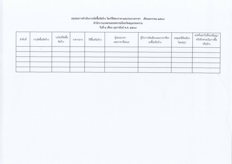 สรุปผลการดำเนินงานจัดซื้อจัดจ้างในรอบเดือน มกราคม 2569