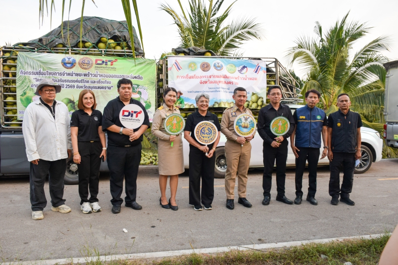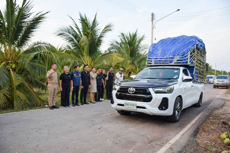 เมื่อวันที่ 11กุมภาพันธ์ 2568 เวลา 17.00 น. นายประดิษฐ์ เกษมวิสิฐกุล เกษตรและสหกรณ์จังหวัดสมุทรสงคราม พร้อม ว่าที่ร้อยตรี อานนท์ วิเศษสิงห์ นักวิเคราะห์นโยบายและแผนชำนาญการ กลุ่มยุทธศาสตร์พัฒนาการเกษตร สำนักงานเกษตรและสหกรณ์จังหวัดสมุทรสงคราม ร่วมปล่อยขบวนรถคาราวาน มะพร้าวน้ำหอม จ.สมุทรสงคราม เพื่อเชื่อมโยงการจำหน่ายและกระจายผลผลิตจากเกษตรกรในพื้นที่ไปยังจังหวัดปลายทาง 8 จังหวัด ได้แก่ จ.สุราษฏร์ธานี จ.ชุมพร จ.พังงา จ.ระนอง จ.ชัยภูมิ จ.ลพบุรี จ.ร้อยเอ็ด และ จ.กระบี่ รวมกว่า 7.500 ลูก เพื่อแก้ปัญหาราคาผลผลิตตกต่ำ ยกระดับราคามะพร้าวและเพิ่มช่องทางจำหน่าย โดยมี นายชยชัย แสงอินทร์ ผู้ว่าราชการจังหวัดสมุทรสงคราม พร้อม นายมงคล เกิดสินธุ์ สหกรณ์จังหวัดสมุทรสงคราม นางยุพา นาคา พาณิชย์จังหวัดสมุทรสงคราม เครือข่ายสหกรณ์ และเจ้าหน้าที่ที่เกี่ยวข้อง ร่วมกันปล่อยขบวนรถคาราวาน มะพร้าวน้ำหอม ณ สวนมะพร้าวน้ำหอม ต.แพรกหนามแดง อ.อัมพวา จ.สมุทรสงคราม