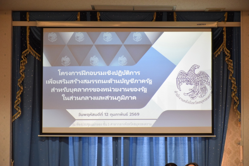 เมื่อวันที่ 12 กุมภาพันธ์ 2569 เวลา 09.00 น. นายประดิษฐ์ เกษมวิสิฐกุล เกษตรและสหกรณ์จังหวัดสมุทรสงคราม มอบ นางสาวสุมิตา คงสกุล เจ้าหน้าที่บันทึกข้อมูล ฝ่ายบริหารทั่วไป สำนักงานเกษตรและสหกรณ์จังหวัดสมุทรสงคราม ร่วมโครงการฝึกอบรมเชิงปฏิบัติการเพื่อเสริมสร้างสมรรถนะด้านบัญชีภาครัฐ สำหรับบุคลากรของหน่วยงานของรัฐในส่วนกลางและส่วนภูมิภาค โดยมี นายรนัสถ์ชัย พุ่มเจริญ รองผู้ว่าราชการจังหวัดสมุทรสงคราม เป็นประธานเปิดโครงการ นายคีรีวัฒน์ จันทร์มณี คลังจังหวัดสมุทรสงคราม กล่าวรายงาน ทั้งนี้เพื่อพัฒนาบุคลากรผู้ปฏิบัติงานด้านบัญชีของหน่วยงานระดับหน่วยเบิกจ่ายในส่วนภูมิภาคให้สามารถปฏิบัติงานให้มีประสิทธิภาพมากขึ้น ณ ห้องประชุมแม่กลอง ชั้น 5 ศาลากลางจังหวัดสมุทรสงคราม