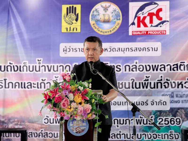 เมื่อวันที่ 12 กุมภาพันธ์ 2569 เวลา 14.00 น. นายประดิษฐ์ เกษมวิสิฐกุล เกษตรและสหกรณ์จังหวัดสมุทรสงคราม มอบ นายโชคชัย รัชตไพบูลย์ นักวิเคราะห์นโยบายและแผนปฏิบัติการ กลุ่มยุทธศาสตร์พัฒนาการเกษตร สำนักงานเกษตรและสหกรณ์จังหวัดสมุทรสงคราม ร่วมพิธีรับมอบถังน้ำเพื่อช่วยเหลือผู้ประสบภัยแล้ง กล่องพลาสติกบรรจุสิ่งของอุปโภคบริโภคและเก้าอี้สุขาพลาสติก สำหรับผู้สูงอายุและผู้พิการ ในพื้นที่จังหวัดสมุทรสงคราม โดยมี นายชยชัย แสงอินทร์ ผู้ว่าราชการจังหวัดสมุทรสงคราม เป็นประธาน นายรนัสถ์ชัย พุ่มเจริญ รองผู้ว่าราชการจังหวัดสมุทรสงคราม ร่วมพิธี พร้อมปล่อยขบวนยานพาหนะบรรทุกถังน้ำ เพื่อช่วยเหลือผู้ประสบภัยแล้ง ณ ศาลาอเนกประสงค์สวนสุขภาพเทศบาลตำบลบางจะเกร็ง อำเภอเมืองสมุทรสงคราม จังหวัดสมุทรสงคราม