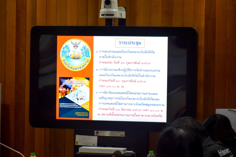 เมื่อวันที่ 16 กุมภาพันธ์ 2569 เวลา 15.00 น. นายประดิษฐ์ เกษมวิสิฐกุล เกษตรและสหกรณ์จังหวัดสมุทรสงคราม มอบ นางสาวกนกอร พุ่มสุข หัวหน้าฝ่ายบริหารทั่วไป สำนักงานเกษตรและสหกรณ์จังหวัดสมุทรสงคราม ร่วมประชุมซักซ้อมการฝึกปฏิบัติ (Drill) การอพยพหนีไฟศาลากลางจังหวัดสมุทรสงคราม ประจำปีงบประมาณ พ.ศ. 2569 โดยมี นางสาวเภารำไพ จรรยา หัวหน้าสำนักงานป้องกันและบรรเทาสาธารณภัยจังหวัดสมุทรสงคราม เป็นประธานการประชุม ณ ห้องประชุมสำนักงานป้องกันและบรรเทาสาธารณภัยจังหวัดสมุทรสงคราม ชั้น 4 ศาลากลางจังหวัดสมุทรสงคราม