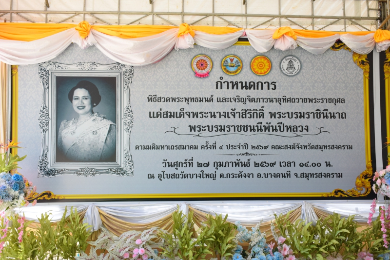 เมื่อวันที่ 27 กุมภาพันธ์ 2569 เวลา 14.00 น. นายประดิษฐ์ เกษมวิสิฐกุล เกษตรและสหกรณ์จังหวัดสมุทรสงคราม มอบนายโชคชัย รัชตไพบูลย์ นักวิเคราะห์นโยบายและแผนปฏิบัติการ กลุ่มยุทธศาสตร์พัฒนาการเกษตร สำนักงานเกษตรและสหกรณ์จังหวัดสมุทรสงคราม ร่วมพิธีสวดพระพุทธมนต์และเจริญจิตตภาวนาอุทิศถวายพระราชกุศลแด่สมเด็จพระนางเจ้าสิริกิติ์ พระบรมราชินีนาถ พระบรมราชชนนีพันปีหลวง ตามมติมหาเถรสมาคม ประจำปี 2569 (ครั้งที่ 4) โดยมี นายชยชัย แสงอินทร์ ผู้ว่าราชการจังหวัดสมุทรสงคราม เป็นประธานในพิธี นายกรกฎ วงษ์สุวรรณ นายรนัสถ์ชัย พุ่มเจริญ รองผู้ว่าราชการจังหวัดสมุทรสงคราม ร่วมพิธี ณ อุโบสถวัดบางใหญ่ ตำบลกระดังงา อำเภอบางคนที จังหวัดสมุทรสงคราม