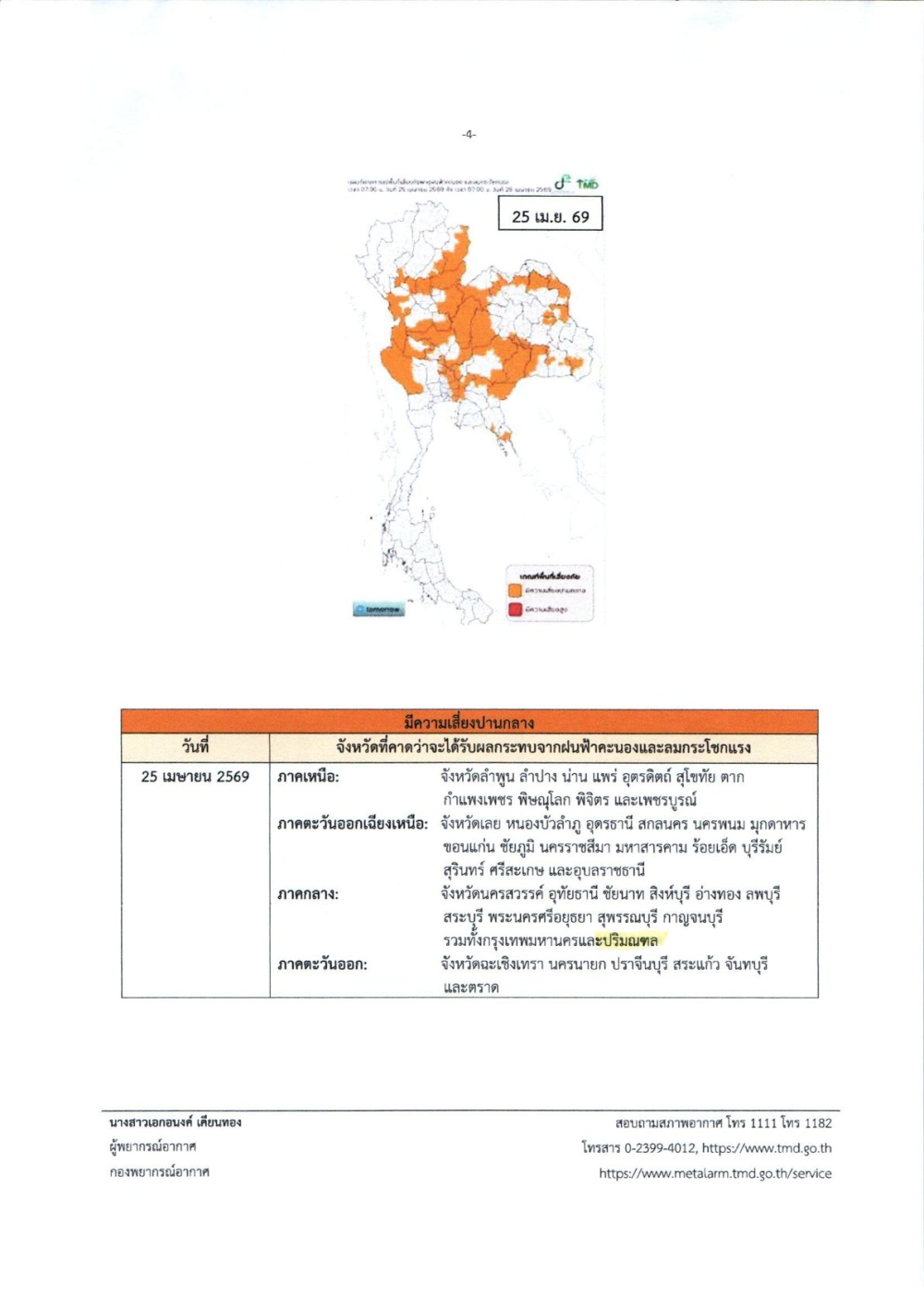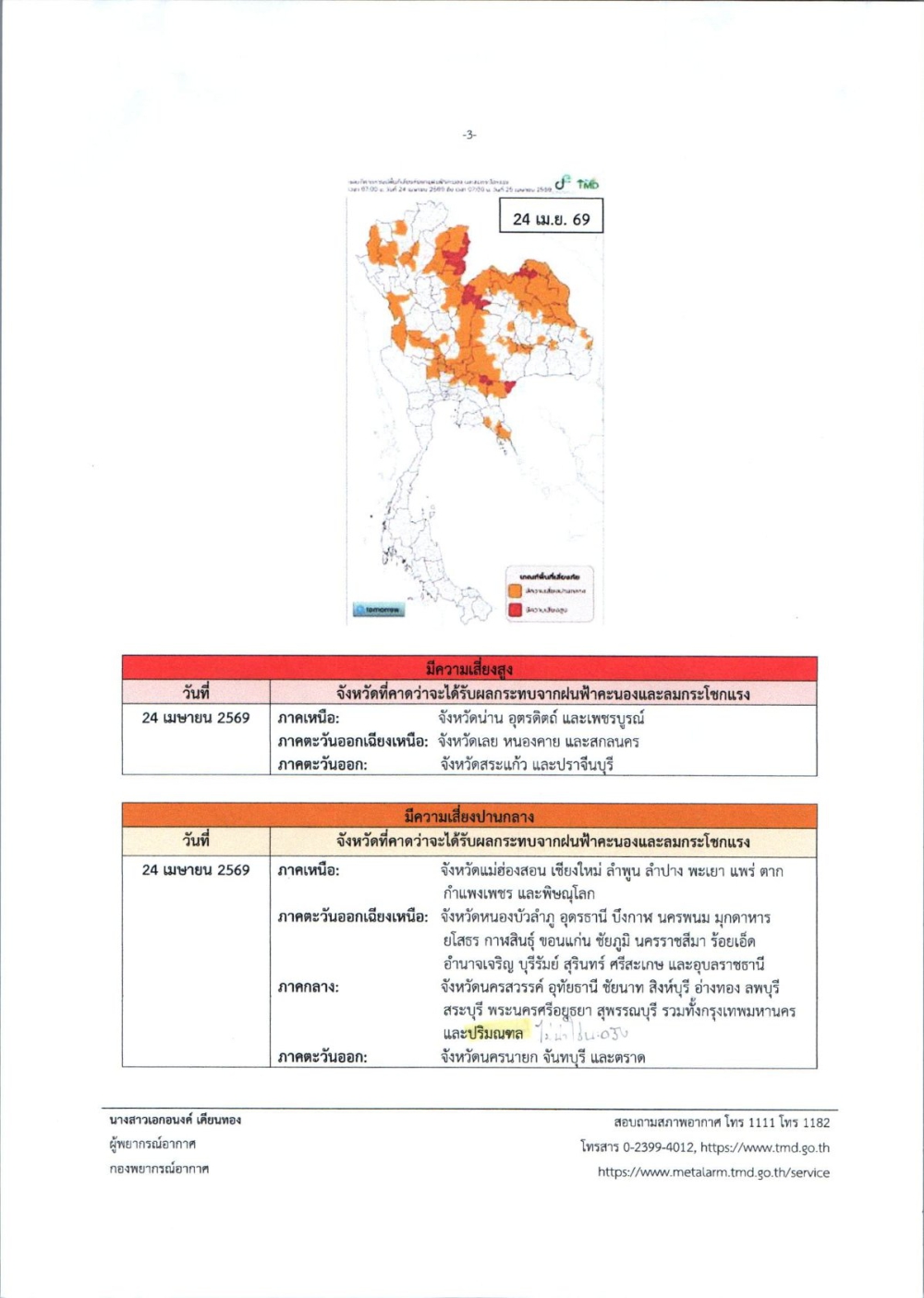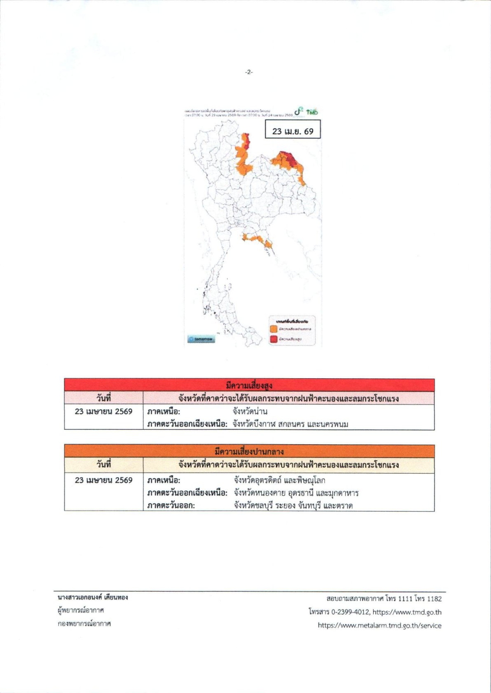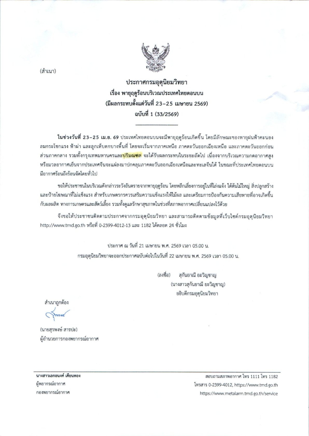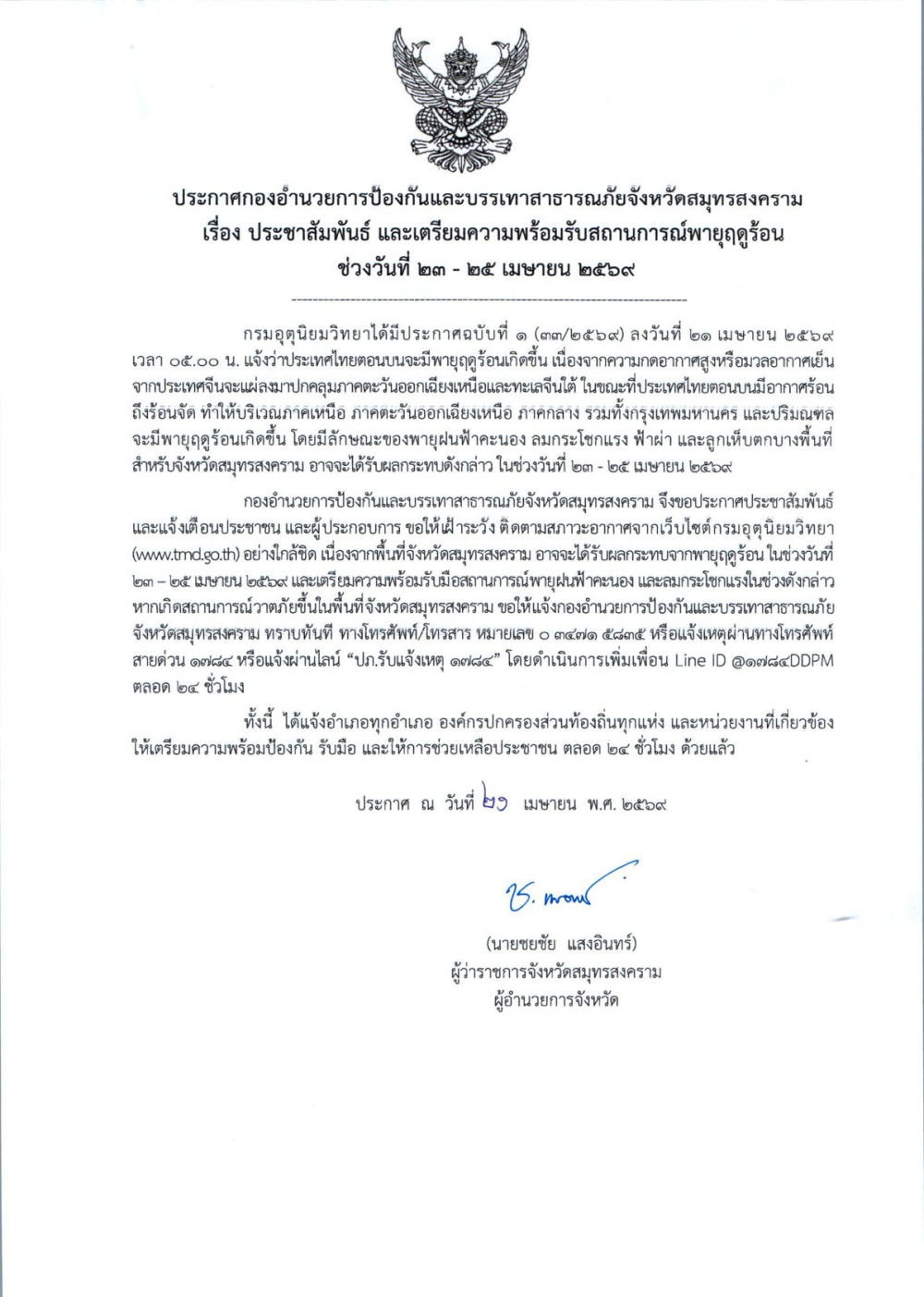 ประชาสัมพันธ์ เตรียมความพร้อมรับสถานการณ์พายุฤดูร้อน ช่วงวันที่ 23-25 เมษายน 2569