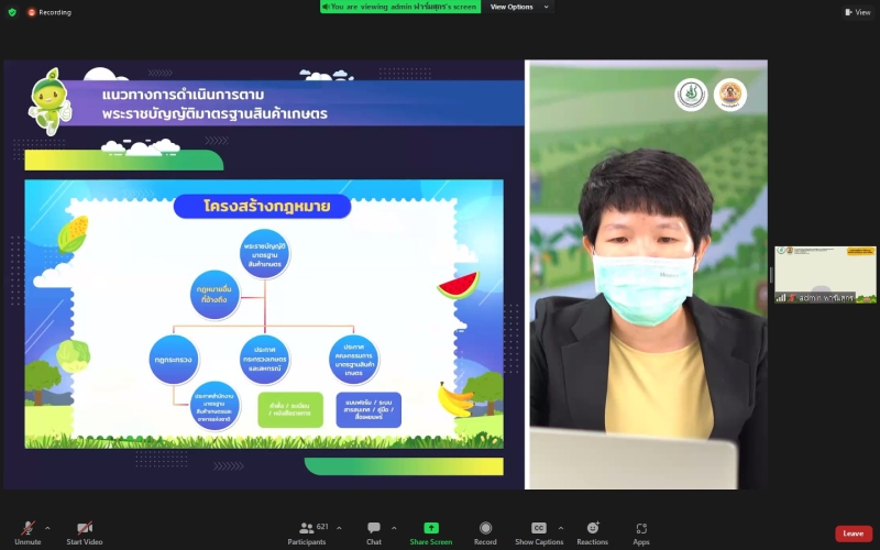 ภายใต้พระราชบัญญัติมาตรฐานสินค้าเกษตร พ.ศ. 2551 (ไก่ไข่,สุกร,ปางช้าง) ผ่านระบบออนไลน์ Zoom Meeting ซึ่งมีวัตถุประสงค์เพื่อสร้างความรู้ความเข้าใจเกี่ยวกับพระราชบัญญัติมาตรฐานสินค้าเกษตร พ.ศ. 2551 ให้แก่ผู้ประกอบการ/ผู้ผลิต และเพื่อให้ผู้ประกอบการผู้ผลิตมีความพร้อมในการเข้าสู่มาตรฐานบังคับ โดยมี นายรักไทย งามภักดิ์ ผู้อำนวยการสำนักพัฒนาระบบและรับรองมาตรฐานสินค้าปศุสัตว์ เป็นประธานเปิดการสัมมนา ซึ่งมีหัวข้อในการบรรยาย ดังนี้