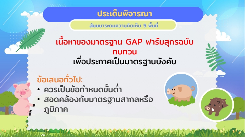 5) มาตรฐานสินค้าเกษตร เรื่อง การปฏิบัติทางการเกษตรที่ดีสำหรับฟาร์มสุกร โดย นางสาวขวัญหทัย ทองปลาด นายสัตวแพทย์ชำนาญการพิเศษ