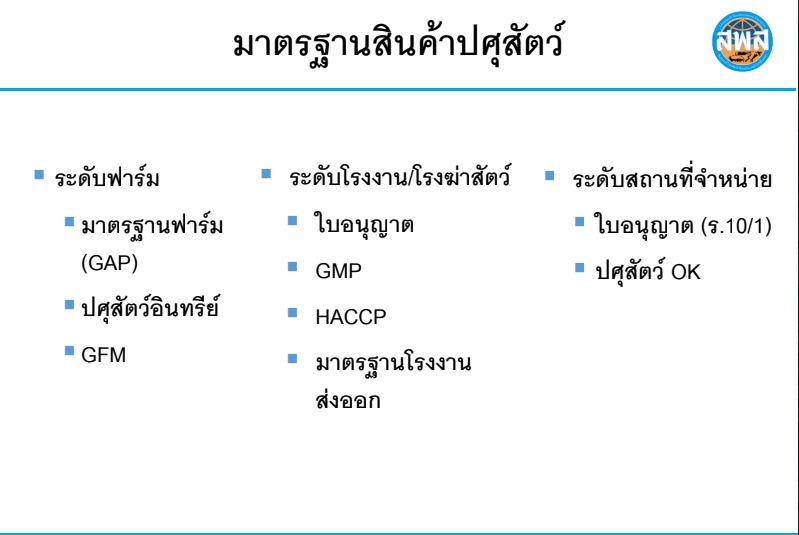 1) แนวทางการดำเนินการตามพระราชบัญญัติมาตรฐานสินค้าเกษตร พ.ศ. 2551 โดย นางสาววรวรรณ มสาริญานนท์ นายสัตวแพทย์ชำนาญการพิเศษ