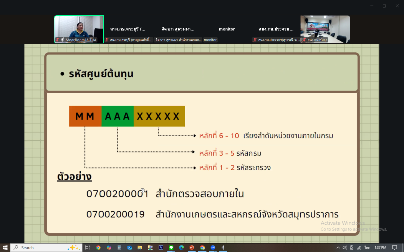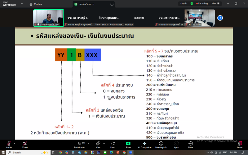 1. รหัสงบประมาณที่ใช้ในการดำเนินการในระบบ New GFMIS Thai