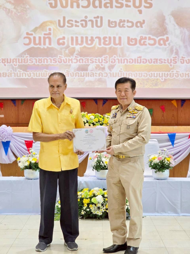 วันที่ 8 เมษายน 2569 เวลา 08.30-15.00 น.นายสุขุมวิท สุขพันธุ์ถาวร เกษตรและสหกรณ์จังหวัดสระบุรี เข้าร่วมกิจกรรมงานวันผู้สูงอายุและวันแห่งครอบครัวจังหวัดสระบุรีประจำปี 2569 ภายใต้แนวคิด “ก้ม กราบ กอดผู้สูงวัย สร้างครอบครัวไทยเข้มแข็ง” โดยมีกลุ่มเป้าหมายประกอบด้วยผู้สูงอายุ และคนทุกช่วงวัย รวมจำนวน 300 คน กิจกรรมภายในงานประกอบด้วย เวทีแลกเปลี่ยนความคิดเห็นประเด็นครอบครัวไทย การแสดงของผู้สูงอายุ การยกย่องเชิดชูเกียรติผู้สูงอายุที่เป็นแบบอย่างที่ดีในสังคม และกิจกรรมรดน้ำดำหัวขอพรผู้สูงอายุ โดยมี นายเลิศชัย สกลเสาวภาคย์ รองผู้ว่าราชการจังหวัดสระบุรี เป็นประธานในพิธี ณ หอประชุมศูนย์ราชการจังหวัดสระบุรี