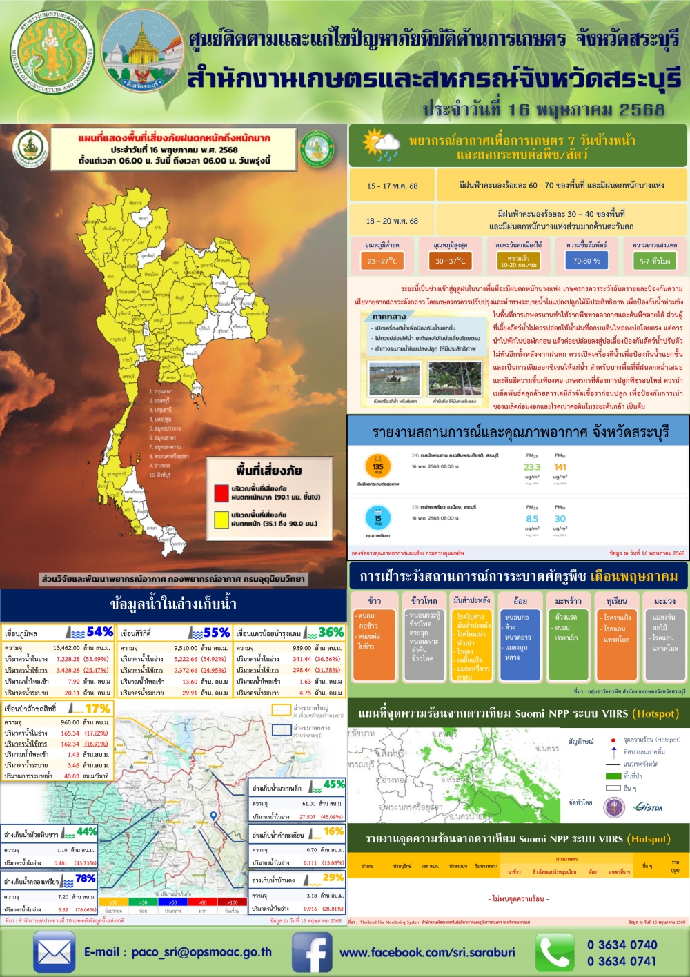 ข่าวประชาสัมพันธ์สถานการณ์ด้านการเกษตร สำนักงานเกษตรและสหกรณ์จังหวัดสระบุรี วันที่ 16 พฤษภาคม 2568
