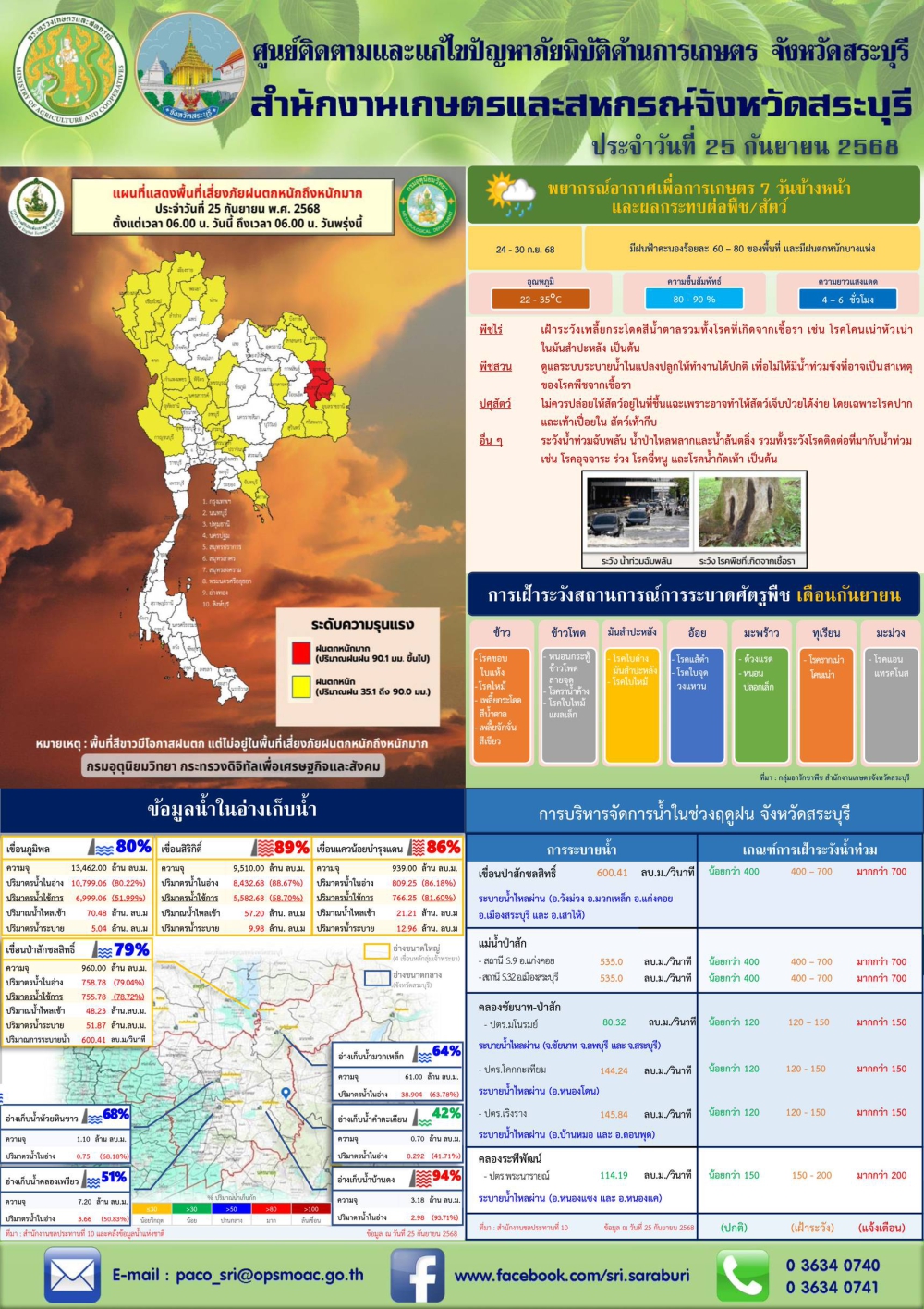 ข่าวประชาสัมพันธ์สถานการณ์ด้านการเกษตร สำนักงานเกษตรและสหกรณ์จังหวัดสระบุรี วันที่ 26 กันยายน 2568