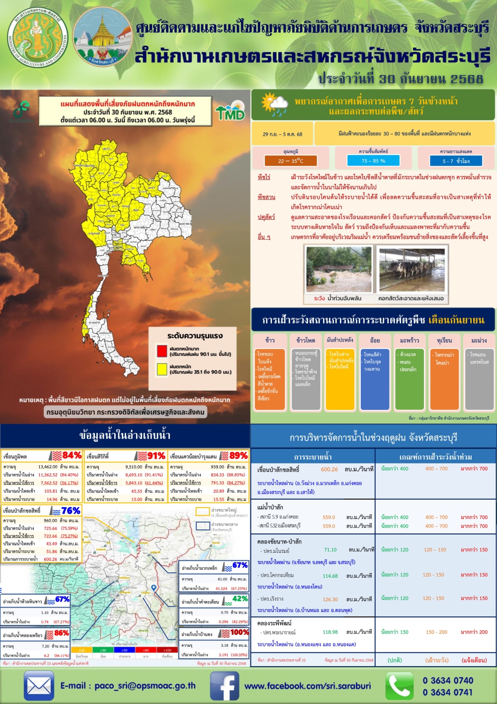 ข่าวประชาสัมพันธ์สถานการณ์ด้านการเกษตร สำนักงานเกษตรและสหกรณ์จังหวัดสระบุรี วันที่ 30. กันยายน 2568
