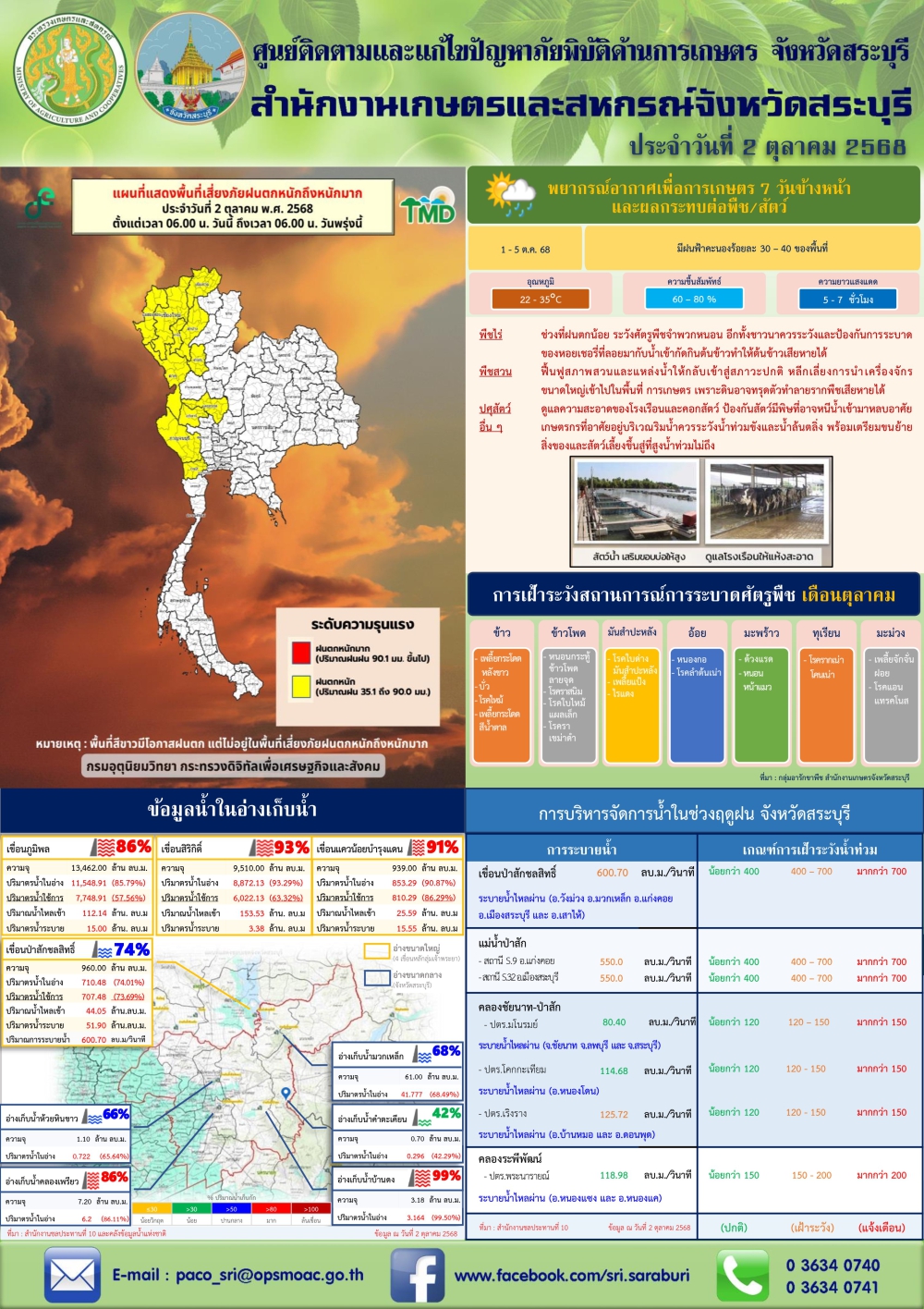 ข่าวประชาสัมพันธ์สถานการณ์ด้านการเกษตร สำนักงานเกษตรและสหกรณ์จังหวัดสระบุรี วันที่ 2 ตุลาคม2568
