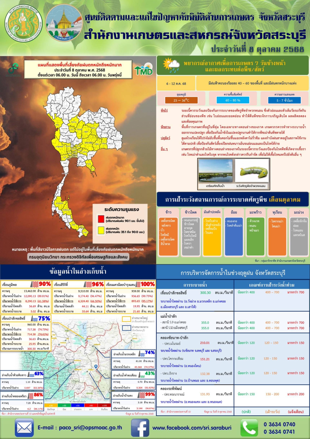 ข่าวประชาสัมพันธ์สถานการณ์ด้านการเกษตร สำนักงานเกษตรและสหกรณ์จังหวัดสระบุรี วันที่ 8 ตุลาคม2568