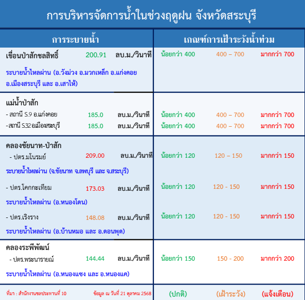 ข่าวประชาสัมพันธ์สถานการณ์ด้านการเกษตร สำนักงานเกษตรและสหกรณ์จังหวัดสระบุรี วันที่ 21 ตุลาคม 2568