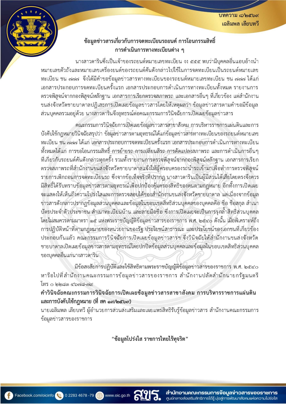 บทความเกี่ยวกับพระราชบัญญัติข้อมูลข่าวสารราชการ พ.ศ. 2540 (มี.ค.69)