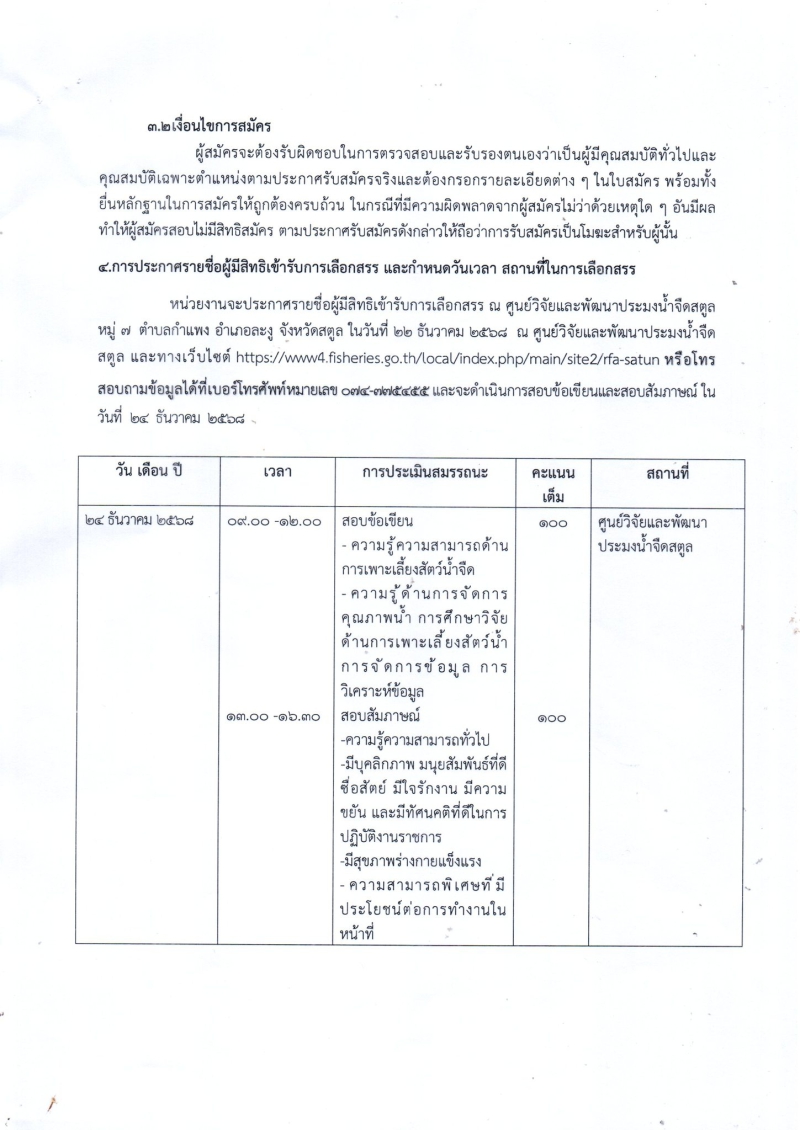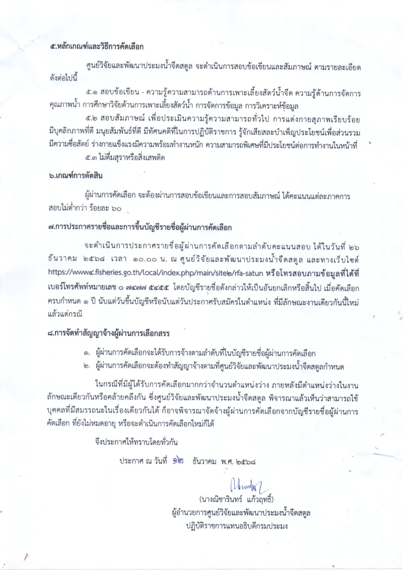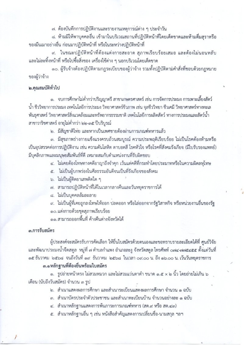 ประกาศศูนย์วิจัยและพัฒนาประมงน้ำจืดสตูล เรื่อง รับสมัครคัดเลือกบุคคลภายนอกเพื่อจ้างเหมาบริการ