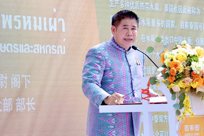 Thammanat Phromphao补充道:“我代表泰国政府向中国大使馆表示感谢。中方对本次活动促进两国合作表示重视和支持,希望本次活动取得圆满成功,推动和拓展泰国优质水果在中国市场的稳定、可持续发展,以及亚洲和太平洋地区的粮食安全。”