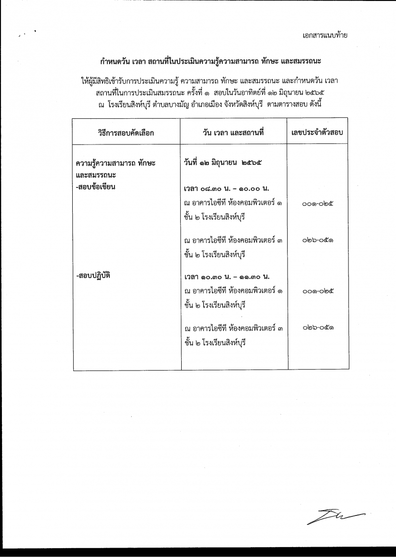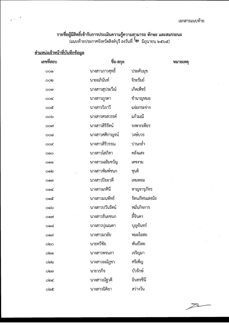 ประกาศรายชื่อผู้มีสิทธิ์เข้ารับการประเมินความรู้ความสามารถเพื่อเลือกสรรเป็นพนักงานราชการทั่วไป ตำแหน่ง เจ้าหน้าที่บันทึกข้อมูล ของสำนักงานเกษตรและสหรกรณ์จังหวัดสิงห์บุรี